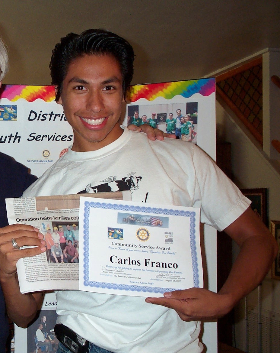 f Carlos Franco receives a Community Service award for working in Operation One Family