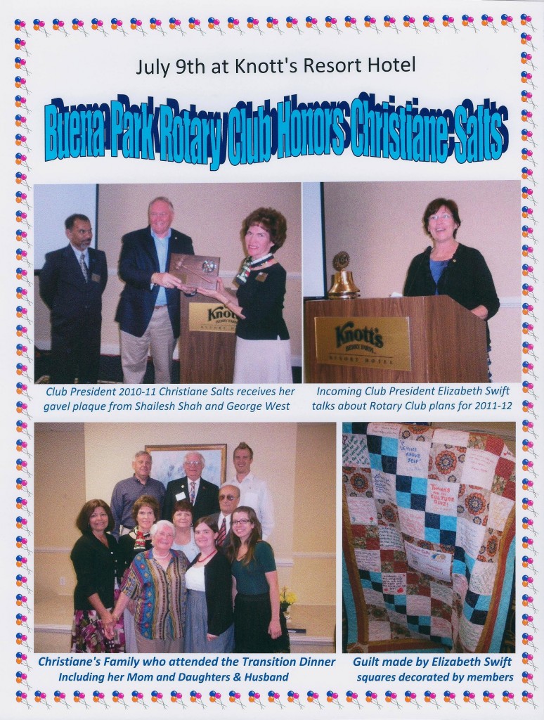Christiane Salts is Rotarian of the Year for Buena Park for 2012-13. She will be honored Oct 12th